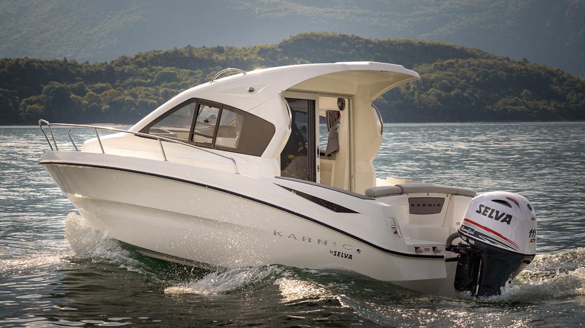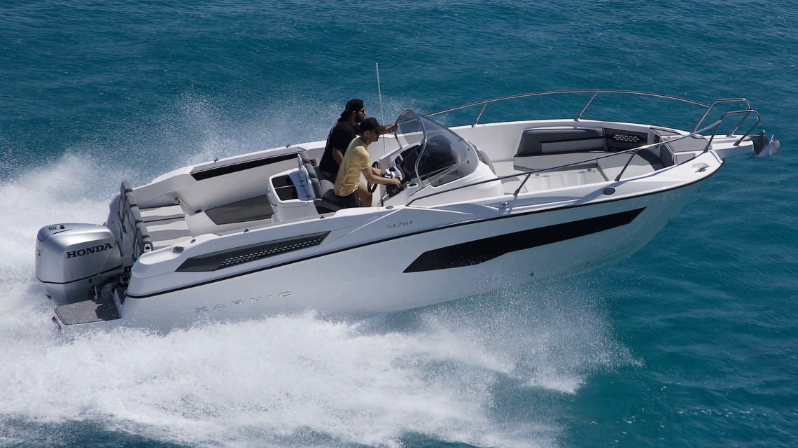 SPECIFICATION Length Overall 7.08 m Hull Length 6.30 m Beam 2.45 m Draft 0.34 m Approximate Weight 1180 Kg Fuel Capacity 200 L Water Capacity 45 L Waste tank Capacity – Certification Persons 7 Design Category C Engine Type Single OB, 25″ Maximum Power 225 hp Sleeping Adults 2 Cockpit Depth 0.76 m Freeboard Aft 0.88 m Freeboard Forward 1.14 m KEY FEATURES Extreme rigidity due to all-composite, foam injected hull […]